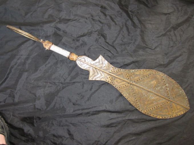 Церемониальный меч йоруба из латуни (воевали такими же, но стальными). Вообще, с этим мечом у меня есть веселая история: выложил я однажды эту картинку в паблике любителей Ведической Руси – мол, смотрите, какие изделия ковали у нас до христианизации, пока Русь огнем и мечом не крестили, а местные как начали репостить это везде. Вот так вот.